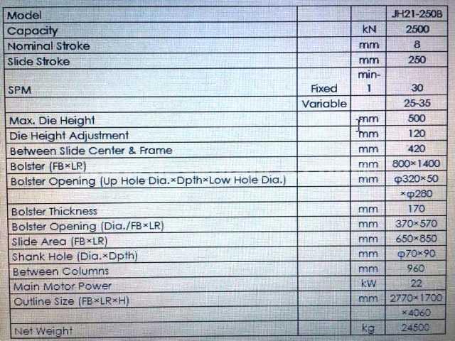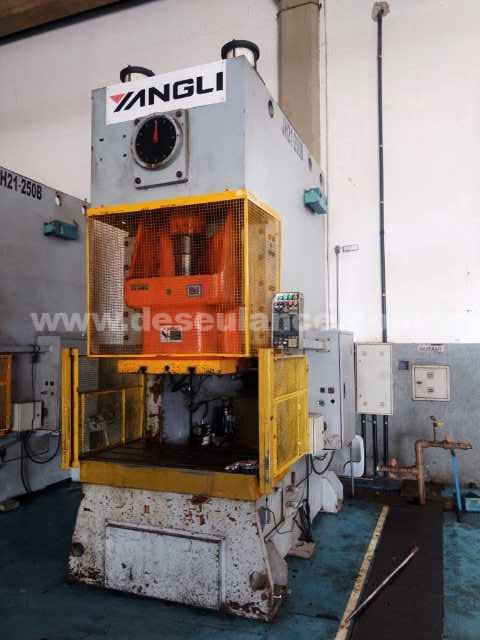 PRENSA EXCÊNTRICA TIPO C FREIO FRICÇÃO M/YANGLI MOD. JH21-250B, CAPAC. 250 TONS, MESA 1.400 X 800 MM, ANO 09.