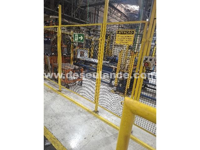 LINHA DE GABINETES M/EUROGAN: REALIZA CORTES, DOBRAS, ACOPLAMENTO DAS CANTONEIRAS, PARTINDO DO BLANK CHAPA METÁLICA C/SEQUÊNCIA DE OPERAÇÕES ATÉ O GABINETE FINAL. COMPOSTA C/02 ROBOS IRB 2400; 02 ROBOS IRB 6600; 03 ALIMENTADORES DE CANTONEIRAS; PANELAS VIBRATÓRIAS; 08 TRANSPORTADORES DE LIGAÇÃO; 04 UNS. HIDRÁULICAS, 02 PINÇAS TOG DE COSTURA; 02 PINÇAS TOG; 03 GRIPPER; ALIMENTAÇÃO; ESQUADRO; VENTOSAS; ESTRUTURA ALIMENTAÇÃO E COMPONENTES ELÉTRICOS NR12: 16 INVERSORES, 36 BARREIRAS, 04 CHAVES MAGNETICAS MONITORADAS SICK, 06 IHM, 03 BLOCOS TN6, BLOCO DE SEGURANÇA, 12 VALVULAS RESIDUAIS ALIVIO DE PRESSÃO. ATENÇÃO: DESMONTAGEM POR CONTA DA ELECTROLUX. RETIRADA A PARTIR DE 15/04. OBS.: VIDE DETALHES TÉCNICOS EM INFORMAÇÕES ADICIONAIS. (VENDA NO ESTADO, CONFORME LOTE EXPOSTO) (SÃO CARLOS/SP)